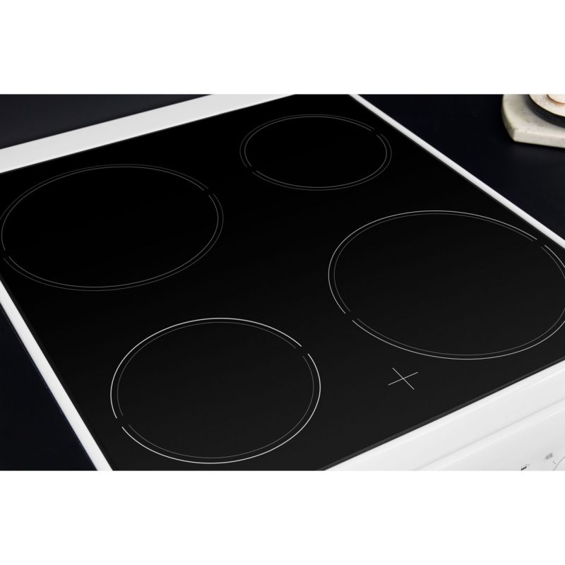 La Hotpoint HD5V92KCWUK es una cocina eléctrica doble (50 cm de ancho) que ofrece funciones versátiles en un tamaño compacto. Integra una placa cerámica de 4 zonas para una cocción flexible. La cavidad principal del horno tiene una capacidad de ~62 L, mientras que la cavidad superior (grill/auxiliar) ofrece ~32 L. La limpieza se simplifica con liners catalíticos en el horno principal, que ayudan a descomponer la grasa a alta temperatura. Un grill de ancho completo aporta capacidad de gratinado, y el sistema de circulación de aire Multiflow distribuye el calor de forma uniforme. El modo de precalentamiento rápido acelera la llegada a la temperatura de cocción.